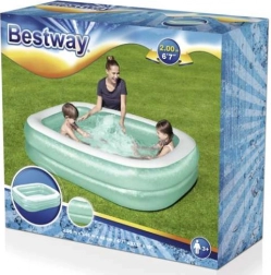 Uživajte u ljetu u vlastitom vrtu s ovim nafukavajućim obiteljskim bazenom marke BESTWAY. Zahvaljujući dimenzijama 201 × 150 × 51 cm nudi dovoljno mjesta za osvježenje djece i odraslih. Dvije samostalne zračne komore osiguravaju stabilnost, čvrst PVC materijal dug vijek trajanja, a brzu instalaciju dovršit ćete u samo nekoliko minuta.