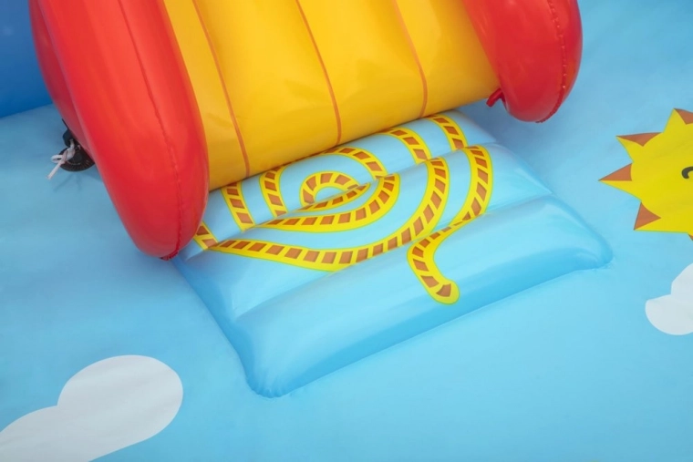 Uživajte u ljetu uz tematski vodeni centar Bestway Wild West. Šareni dizajn, sigurna konstrukcija i promišljeni dodaci jamče sate aktivne zabave na svježem zraku. Integrirani raspršivač spaja se izravno na vrtnu crijevo, a za udobno klizanje brine napuhani jastučić u podu.