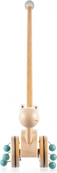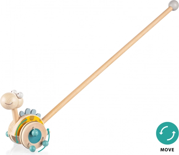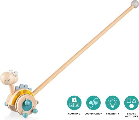Jahač na dugoj štapi je savršena igračka za djecu koja tek počinju hodati. Dinosaurus na štapi se u pokretu okreće i zahvaljujući drvenim kuglicama na kotačićima stvara zvuk koji djetetu privlači pažnju i potiče ga na hodanje.