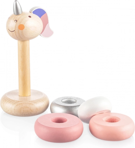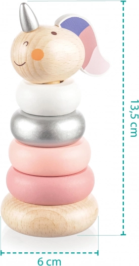 Doživite zabavno edukativno iskustvo s drvenom igračkom jednorog, namijenjenom djeci od 16 mjeseci. Ovaj razigrani set omogućuje djeci da slažu i postavljaju prstenove od kvalitetnog bukovog drva, čime se razvija njihova fina motorika i prostorno razmišljanje.