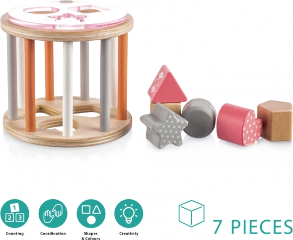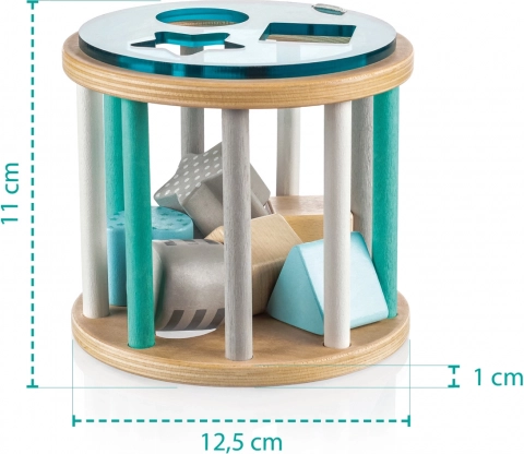 Učenje treba biti igra, a to vrijedi i za razvoj koordinacije, motorike i upoznavanje novih stvari. Drvena slagalica sastoji se od 6 oblika različitih boja koji se umeću u drveni valjak za slaganje. Dijete uči koordinirati pokrete očiju i ruku te prepoznavati nove oblike i boje.