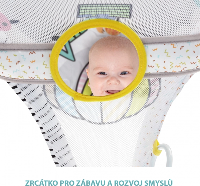 Igriva podloga Funny Jungle stvara sigurno i poticajno okruženje za svakodnevnu igru i odmor. Viseće igračke motiviraju bebu da se pruža, hvata i njiše, čime prirodno jača mišiće i koordinaciju. Jedna igračka reproducira ugodnu melodiju koja pomaže smiriti i zaokupiti bebu.