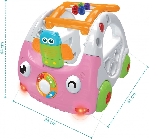 Slatka aktivnosti guralica 3u1 u obliku autića potiče prve korake i igru. Ima visinski podesivu ručku, tihi kotači s kočnicom, svjetlosne i zvučne efekte te zabavne aktivnosti kocke. Prikladno za djecu od 6 mjeseci.