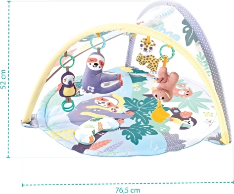 Viseće igračke motiviraju bebu na dosezanje i hvatanje, a zvukovi i melodije potiču pažnju i smiruju. Idealno za svakodnevnu igru na trbuščiću i na leđima.