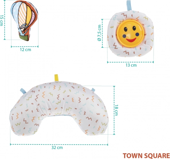 Ova mekana i sigurna igraća podloga Town Square osmišljena je za zabavu i razvoj bebe od prvih dana. Viseće igračke motiviraju dijete na dosezanje i hvatanje, čime se prirodno jačaju mišići i razvija koordinacija oko–ruka. Jedna od visećih igračaka reproducira ugodnu melodiju koja pomaže umiriti bebu.