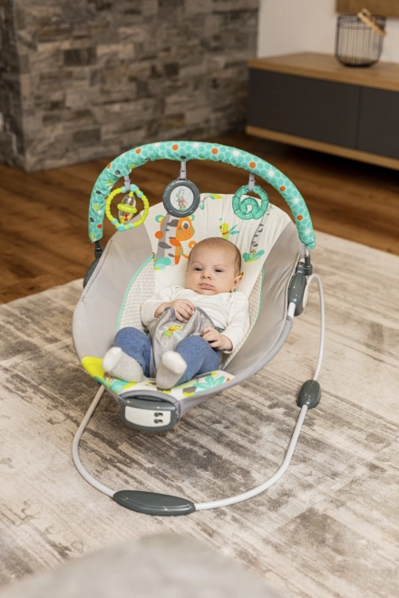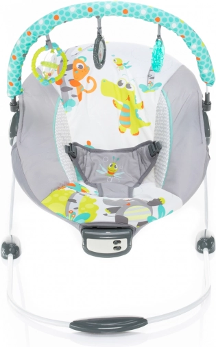 Vibrirajuća ležaljka Happy dolazi u izraženijim veselim bojama i doprinosi stimulaciji osjetila male djece od rođenja do 9 kilograma. Cijenit ćete je u trenucima kada beba ne spava, a želite je umiriti, zabaviti i istovremeno uključiti u obiteljska zbivanja. Djeca naprosto vole ugodno “sjedanje” u ležaljci, osobito kada je mogu svojim pokretima sama zaljuljati. Kombinacija ljuljanja, vibracije, melodija i igračaka osigurat će da se vaš anđeo neće dosađivati.