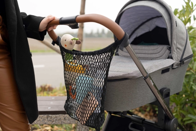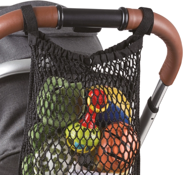 Mrežasta torba za kolica omogućuje vam da sve potrepštine imate odmah pri ruci. Lako se postavlja pomoću čičak-traka na ručku kolica i kompatibilna je sa svim modelima. Torba je izrađena od izdržljivog i elastičnog materijala (nosivost do 2,5 kg). Prostrana je i zahvaljujući mogućnosti zatvaranja iz nje ništa nećete izgubiti.