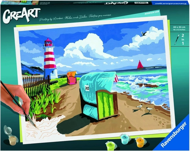 CreArt (Premium Series B) – praznici na Baltičkom moru idealan je izbor za mlade i početnike koji žele otkrivati ljepotu obale. Zahvaljujući unaprijed otisnutim površinama i numeriranim bojama, lako ćete uroniti u stvaranje i korak po korak izraditi dojmljivu sliku morske obale.