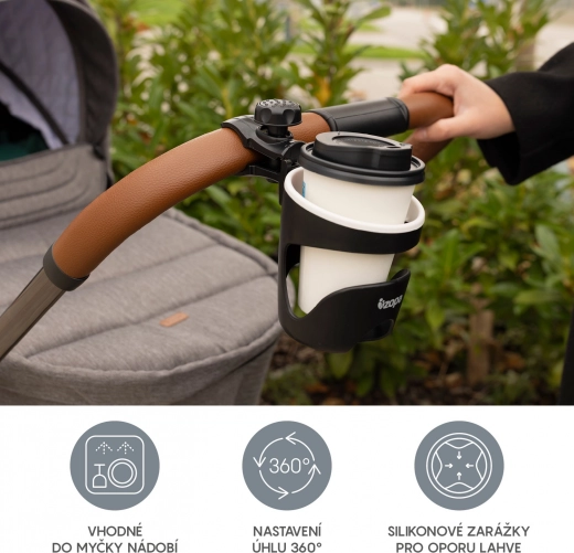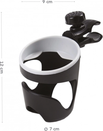 Praktični držač napitaka za dječja kolica i bicikle drži vaš napitak uvijek pri ruci i na sigurnom. Zahvaljujući rotirajućoj glavi i čvrstoj stezaljci nudi stabilno pričvršćenje, kompatibilnost s većinom čaša i boca te jednostavnu ugradnju bez alata. Izrađen od izdržljivih i ekološki prihvatljivijih materijala, s mogućnošću brzog skidanja i pranja u perilici posuđa.