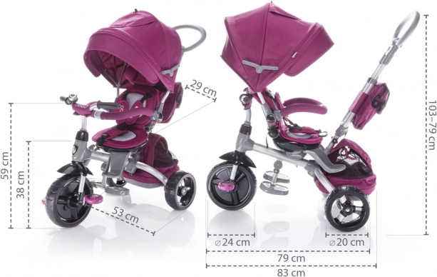 - Uklanjanje sunčane tende, prednje prečke, prednjeg naslona i pedala omogućuje djetetu bolji užitak u vožnji.