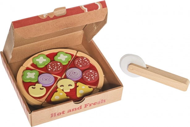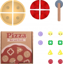 Drvena igračka za djecu predstavlja realističan set pizze koji pruža zabavu i potiče dječju kreativnost. Sigurna igračka sastoji se od 20 elemenata, uključujući drveni rezač i sastojke na čičak. Samih dijelovi su u živim bojama, bez oštrih rubova i izrađeni od kvalitetnog prirodnog drva obojenog netoksičnim bojama.