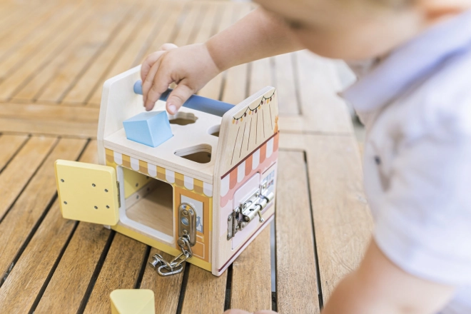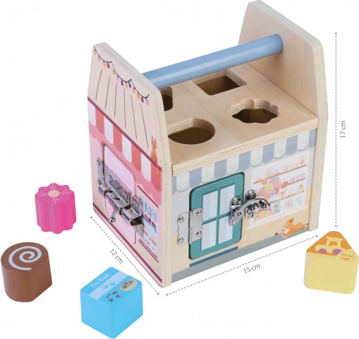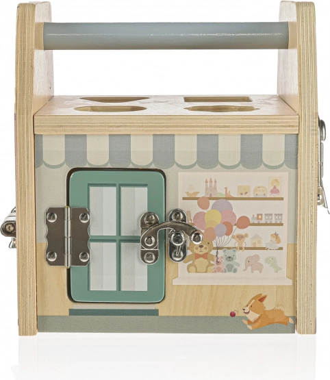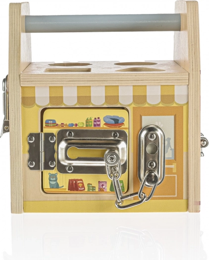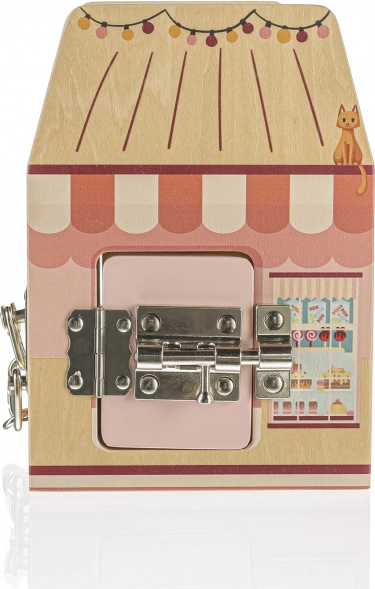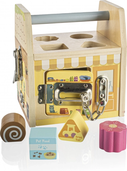 Svaka strana ove drvene kocke predstavlja drugu trgovinu, a svaka trgovina, kako i priliči, ima svoju posebnu bravu protiv lopova. Djeca se kroz igru s bravicama uče logičkom i prostornom razmišljanju.