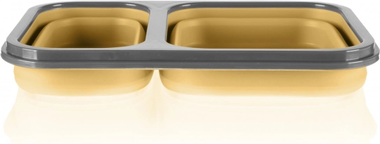 Ova kutija za užinu izrađena je od sigurnog silikona za prehranu, koji je netoksičan i otporan na lomljenje. Velika prednost je što se lako sklapa nakon što pojedete sadržaj – zahvaljujući tome smanjuje svoju veličinu i do 60 % pa je idealan i kompaktan suputnik na izletima. Poklopac vrlo dobro brtvi, a ima i ugrađeni pretinac za pribor; žličica s vilicom dolaze u praktičnoj futroli.