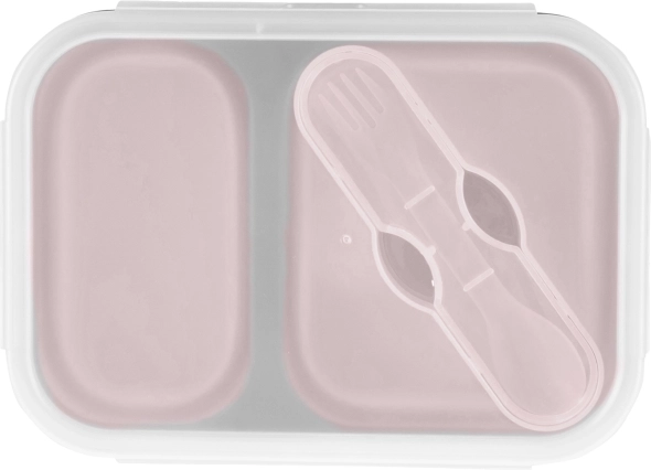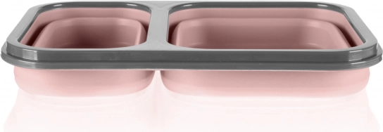 Ova kutija za užinu izrađena je od sigurnog silikona za kontakt s hranom, koji je netoksičan i otporan na lomljenje. Velika prednost je što se lako sklapa nakon što pojedete sadržaj – time smanji svoju veličinu i do 60 %, pa je idealan i kompaktan suputnik na izletima. Poklopac vrlo dobro brtvi, a u sebi ima ugrađeni pretinac za pribor; žličica s vilicom dolaze u praktičnoj futroli.