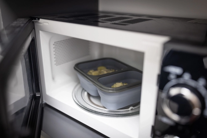 Kutija je podijeljena na 2 zasebna odjeljka, čime se sprječava miješanje pojedinih jela.