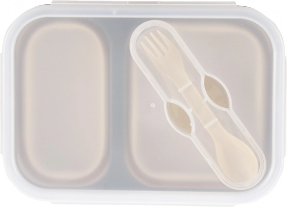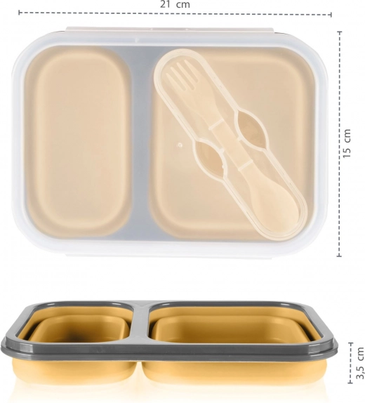 Ova kutija za užinu izrađena je od sigurnog silikona za kontakt s hranom, koji je netoksičan i otporan na lomljenje. Velika prednost je jednostavno sklapanje nakon što pojedete sadržaj – zahvaljujući tome smanjuje svoju veličinu i do 60 % te je stoga idealan i kompaktan suputnik na izlete. Poklopac vrlo dobro brtvi, ima ugrađeni pretinac za pribor, žličica s vilicom dolaze u praktičnoj futroli.