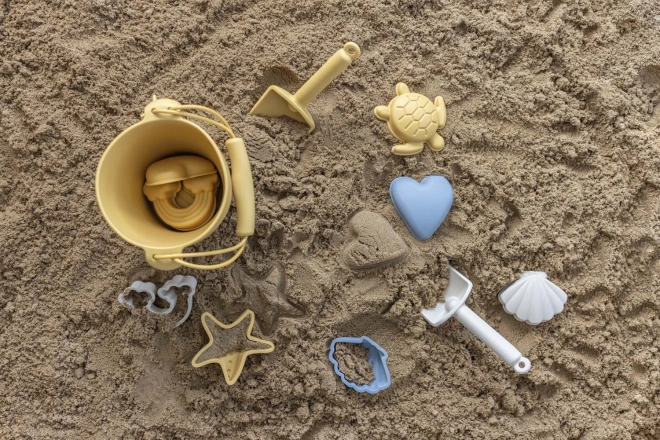 Silikonski kalupi u setu s lopaticom i kantom pružaju sigurnu zabavu. Silikon za prehrambenu upotrebu je netoksičan i otporan na lomljenje. Maloj djeci je silikon prirodniji od plastike ili metala. Osim zabave u pijesku, tijekom igre razvija se i fina motorika djeteta te koordinacija oko-ruka. Sadrži 8 dijelova u prekrasnom minimalističkom dizajnu.