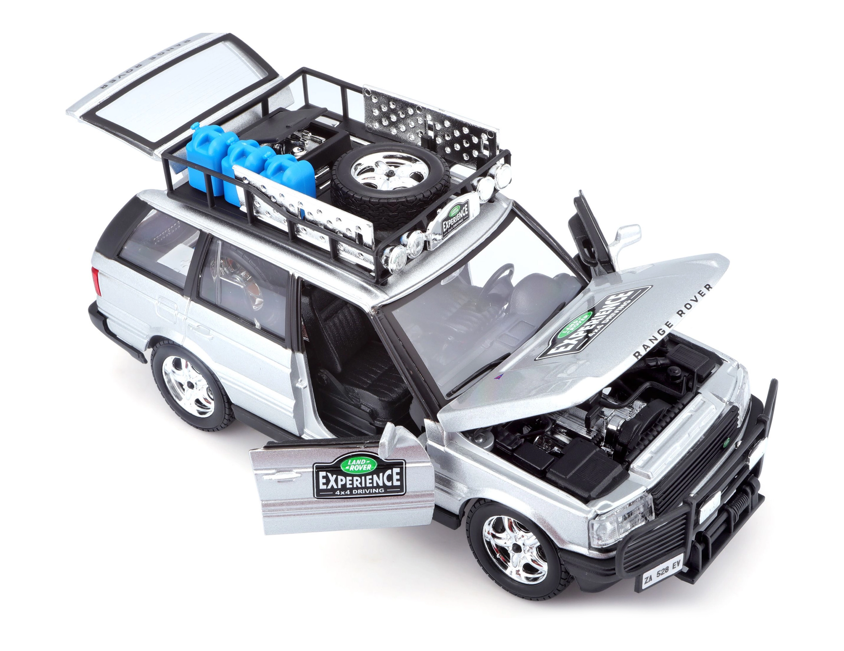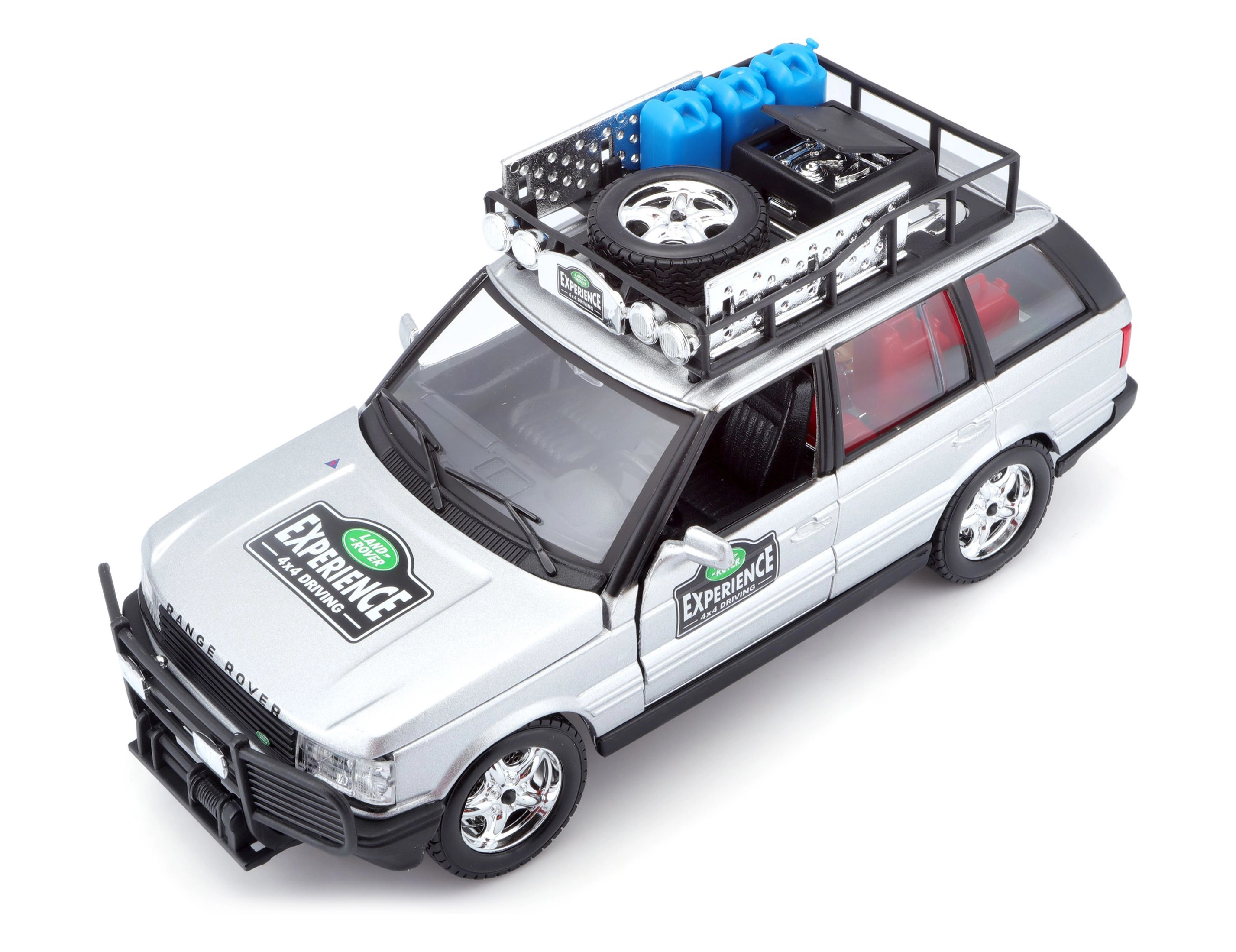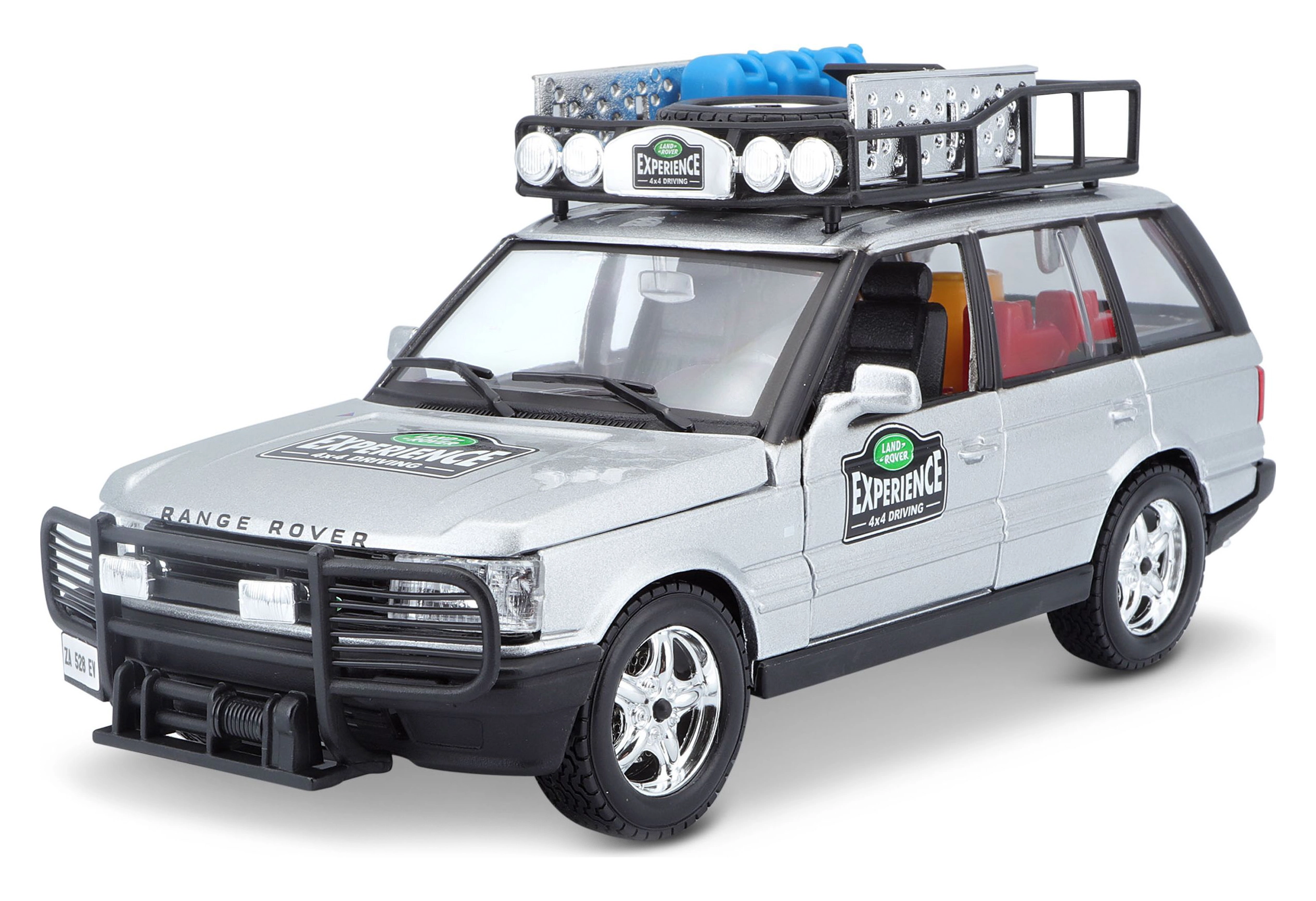 Ovaj precizno izrađen model vozila RANGE ROVER u mjerilu 1:24 donosi autentične detalje koji će razveseliti svakog ljubitelja terenskih vozila. Srebrna karoserija upotpunjena krovnim nosačem s priborom, prednjim zaštitnim okvirom i realističnim naljepnicama stvara atraktivan izgled za igru i izlaganje.