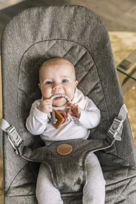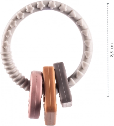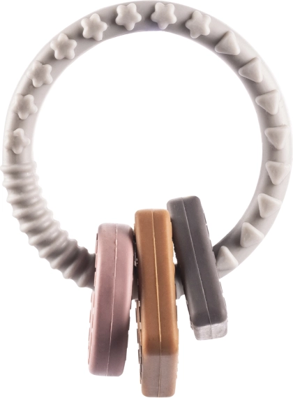Grickalica je izrađena od sigurnog silikona za prehranu, koji je netoksičan i otporan na lomljenje. Za malu djecu silikon je prirodniji od plastike ili metala. Grickalica ima različite oblike na silikonskom prstenu i odlično pristaje i u najmanju ručicu. Zahvaljujući svojem obliku potiče motoriku ruku, osobito koordinaciju ruka-oko. Vrlo ugodno za grickanje te umirivanje opterećenih i osjetljivih desni tijekom nicanja zubi. Različite teksture služe još boljoj stimulaciji desni.