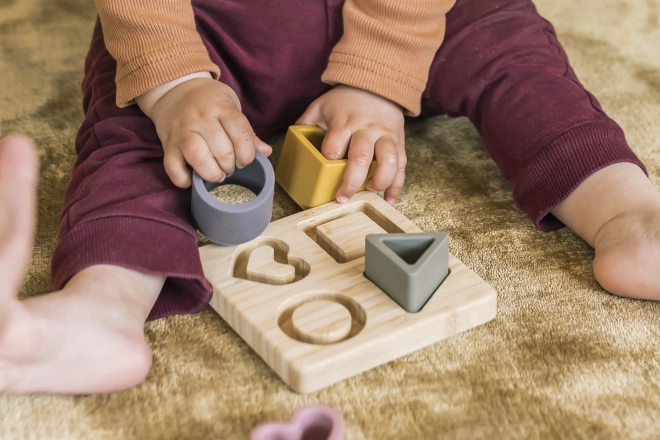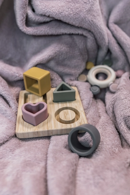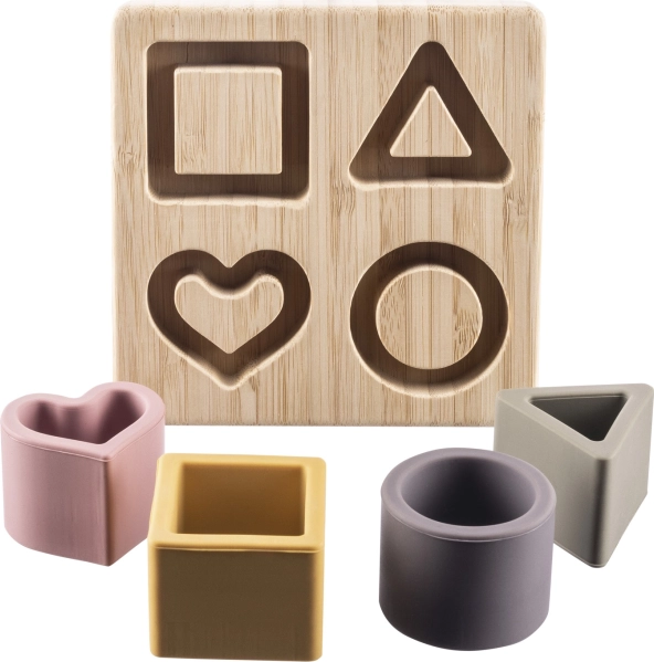 Silikonske slagalice u obliku kocke, trokuta, kruga i srca izrađene su od sigurnog silikona za prehrambenu upotrebu, koji je netoksičan i otporan na lomljenje. Za malu djecu silikon je prirodniji od plastike ili metala. Vrlo ugodno za grickanje i stimulaciju umorenih i osjetljivih desni tijekom rasta zubića.