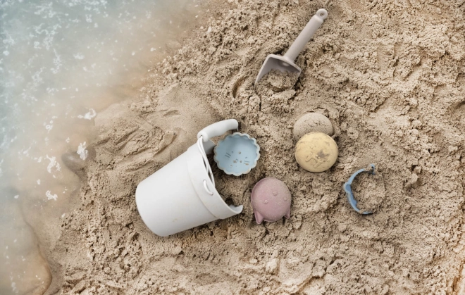 Silikonski kalupi u setu s lopaticom i kantom sigurna su zabava. Silikon za prehranu je netoksičan i otporan na lomljenje. Za malu djecu silikon je prirodniji od plastike ili metala. Osim igre u pijesku, tijekom igre razvijaju se i fina motorika djeteta te koordinacija oko-ruka. Sadrži 8 dijelova u prekrasnom minimalističkom dizajnu.