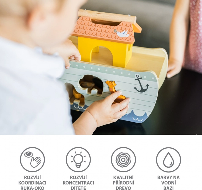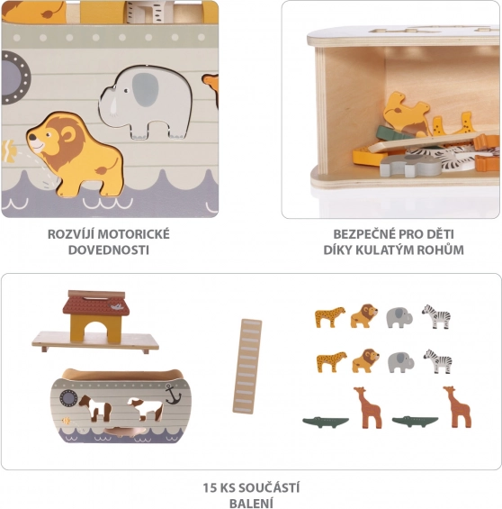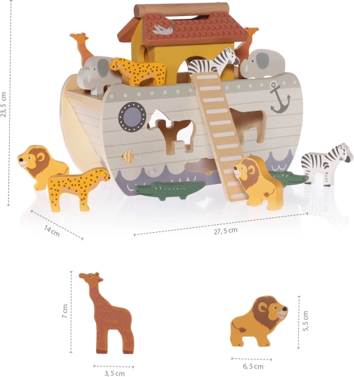 Priuštite svom malom avanturistu spašavanje životinjskog carstva, baš kao u biblijskoj priči o Noi i arci. Drvena slagalica razvija koordinaciju ruka-oko, logičko razmišljanje, maštu i uči prepoznavati životinje.