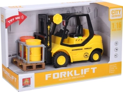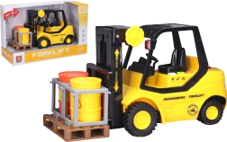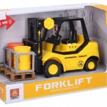 Žuto-crni viličar savršen je dodatak svakoj dječjoj kolekciji igračaka. Ovaj model namijenjen je spretnih vozačima koji će cijeniti njegovu pokretnu prednju stranu prikladnu za podizanje paleta.