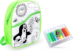Zabavan i kreativan ruksak za bojanje s motivom KRTKA za male umjetnike. U pakiranju je 8 kolor flomastera za tekstil, koji se lako ispiru hladnom vodom. Idealan za izlete i vrtić, dimenzije cca 30 × 27,5 cm, preporučeno od 3 godine.