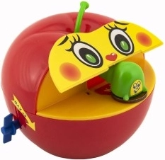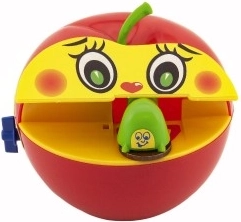 Ova plastična kasica imitira popularnu jabuku i idealna je za djecu od tri godine. Zahvaljujući mehaničkom navijanju na ključ, korištenje je zabavno i jednostavno. Nakon umetanja novčića, crvić ga uhvati i odnese unutar jabuke, motivirajući djecu na štednju.