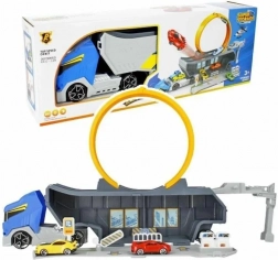 Ovaj praktični tegljač izvrstan je suputnik za svakodnevnu igru – služi kao transporter autića i kao akcijska staza za brze utrke. Nakon „servisa“ dovoljno je rasklopiti tegljač, priključiti stazu i zabava može početi.