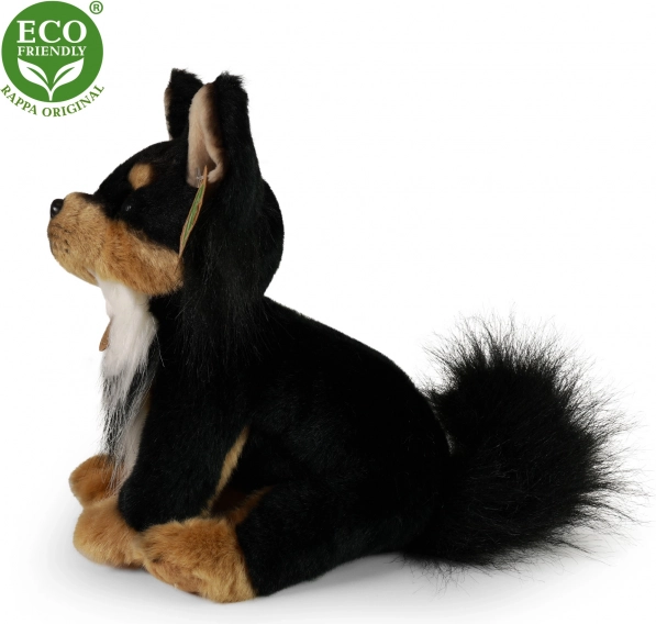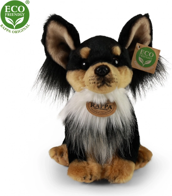 Ovaj sjedeći plišani psić čivava duljine oko 24 cm mekan je na dodir i siguran čak i za najmlađu djecu. Punjenje od recikliranih PET boca je testirano, kvalitetno i na dodir nerazlučivo od uobičajenog punjenja. Odličan izbor za roditelje koji traže sigurnu, kvalitetnu i ekološku igračku.
