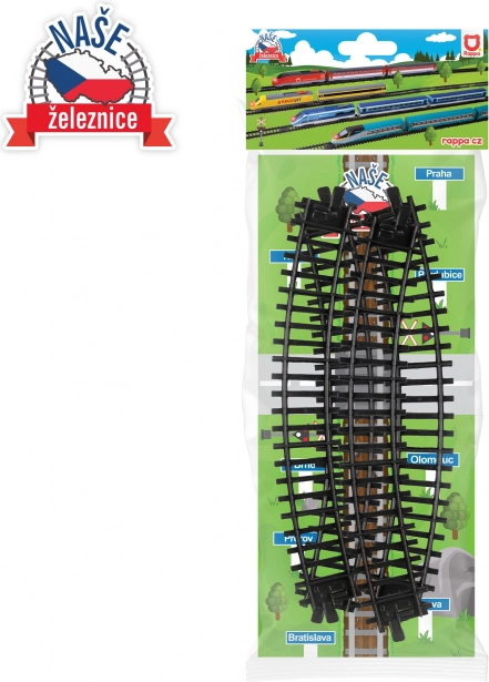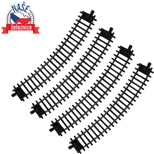 Proširite svoju željezničku prugu setom zakrivljenih tračnica u pakiranju od 4 komada. Kompatibilno s vlakovima RegioJet, Češke željeznice, SC Pendolino i Željezničná spoločnosť Slovensko. Dodajte više zabave i dužu vožnju za vaše modelne vlakiće.