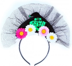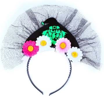Ova jedinstvena traka kombinira čaroban dizajn s šarenim cvjetovima, koji će vašem izgledu dodati šarm. Savršena je za odrasle koji žele privući pažnju na Noć vještica ili tijekom karnevalskih proslava.