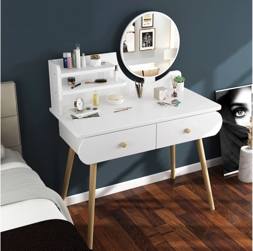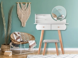 Funkcionalna minimalistička toaletna konzola u skandinavskom stilu može postati sjajan dodatak djevojačkoj sobi. Bijela toaletna konzola s okruglim zrcalom, prostranim ladicama i udobnom stoličicom bit će idealna za nanošenje make-upa, češljanje kose, uređivanje odjeće pa čak i pisanje dnevnika.