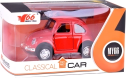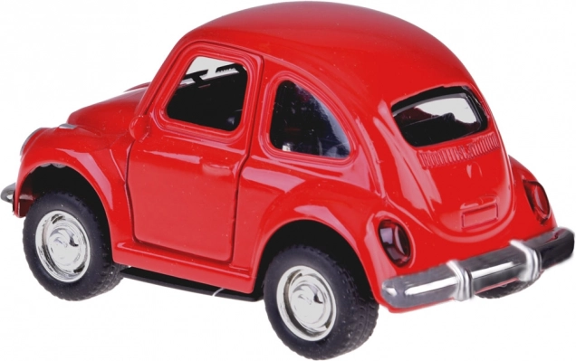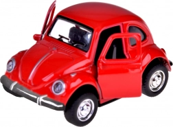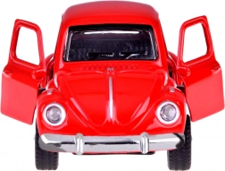 Stilni crveni metalni autić u stilu klasične Bube razveselit će male vozače i kolekcionare. Nudi otvarajuća vrata, svjetlosne efekte, zvukove i jednostavnu vožnju s pull-back mehanizmom (povlačenje unatrag). Zahvaljujući gumenim kotačima odlično vozi, a kompaktne dimenzije idealne su za putovanja. Isporučuje se u poklon pakiranju.