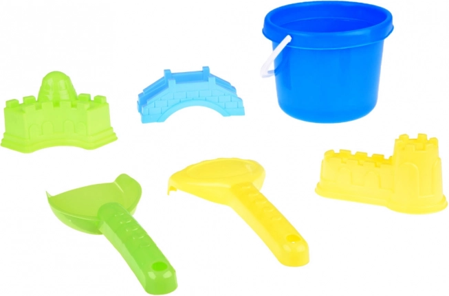 Sve što djeci treba za gradnju dvoraca i mostova: kanta, lopatica, grabljice i 3 kalupa u živim bojama. Potiče kreativnu igru i suradnju.