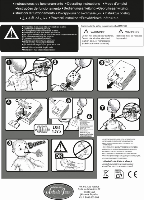 Lutka Antonio Juan Bimba savršen je pratilac za vaše dijete. Njezino mekano platneno tijelo i realistične mrkajuće oči dodaju igri autentičnost. Ova blagonaklona lutka je također interaktivna, jer reagira na magnetsku dudu i prilikom njenog izvlačenja ispušta zvukove poput "mama" i "tata", te realistični plač djeteta, koji se može utišati ponovnim stavljanjem dude: