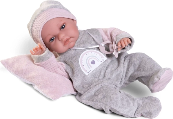 Dobro došli u svijet realističnih lutaka gdje vaše dijete može uživati u bebinim funkcijama zahvaljujući naprednim funkcijama ove lutke. Lutka Antonio Juan je ručno izrađena u Španjolskoj i zahvaljujući unutarnjoj potpori kostura može izvesti neobične pokrete kao što je prekriženje nožica ili spajanje dlanova. Odjeća lutke je od organskog pamuka, osiguravajući ekološku proizvodnju bez kemijskog tretiranja.
