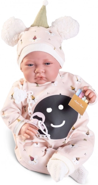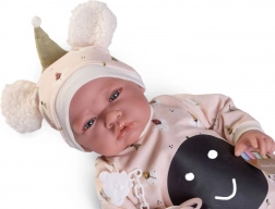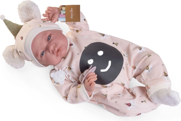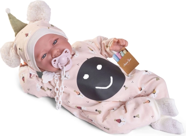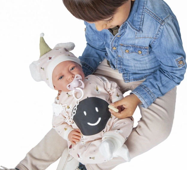 Ručno izrađena španjolska lutka brenda Antonio Juan donosi vjerno izrađene detalje lica i zglobne udove koji omogućuju različite položaje, uključujući samostalno sjedenje. Njezino meko tekstilno tijelo osigurava ugodno grljenje i udobnost pri igri.