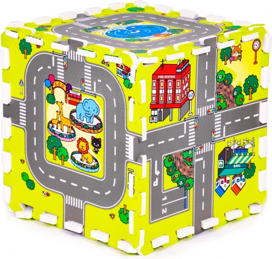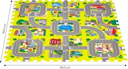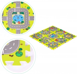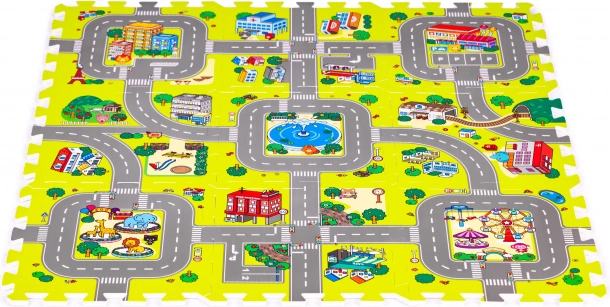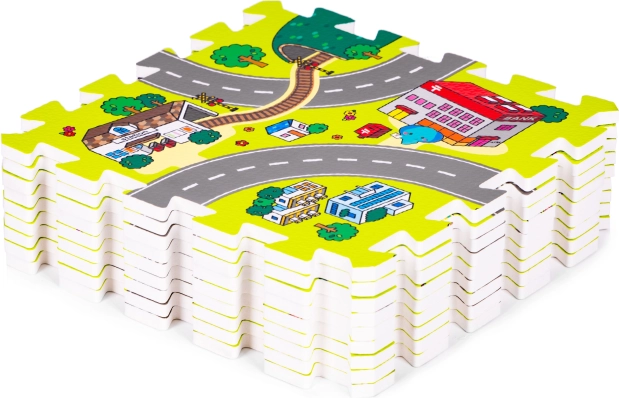 Ova pjenasta igraća podloga sa šarenim motivom grada, cesta i zgrada stvara poticajan prostor za maštu, učenje i razvoj motorike. Djeci pruža udobno i mekano mjesto za igru, puzanje i prve korake, a ujedno štiti od hladnoće poda i ublažava udarce pri padovima.
