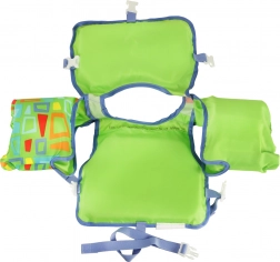 Pjenasta ispuna prsluka osigurava odličnu plovnost, dok priloženi rukavi obloženi mekim materijalom održavaju dijete bez poteškoća na površini. Podesive kopče osiguravaju savršeno prilagođavanje djetetovoj figuri, čime osiguravaju udobnost tijekom igre. Prsluk se ističe uočljivim, zelenim dizajnom i zanimljivim uzorkom koji privlači pažnju, a dijete je vidljivo i iz daljine.