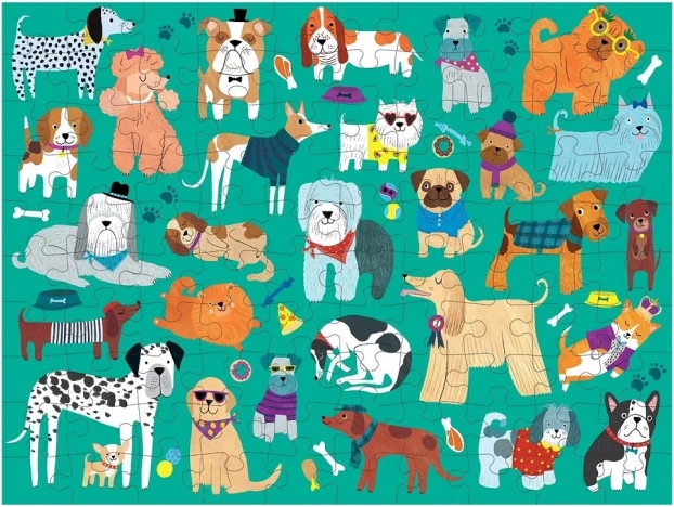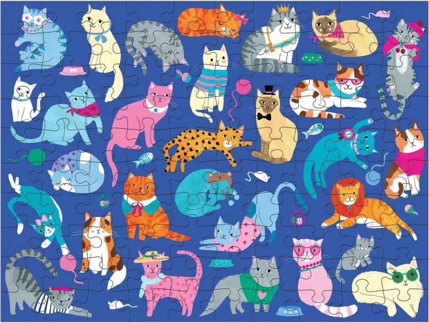 Ova dvostrana slagalica donosi dvostruku dozu zabave: s jedne strane pronaći ćete preslatke ilustracije pasa, a s druge lijepe mačke. Zahvaljujući 100 dijelova idealna je za djecu od 6 godina nadalje i za zajedničko obiteljsko slaganje. Kvalitetna izrada i žive boje potiču koncentraciju i treniraju vizualno pamćenje.