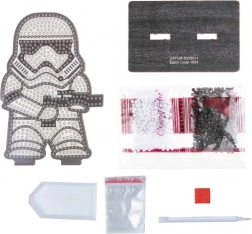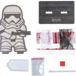 Ovaj kreativni set dijamantnog slikanja u stilu STAR WARS pretvara svaki trenutak odmora u ugodnu aktivnost. Postupak je jednostavan – pomoću aplikacijske olovke prenosite pojedine kamenčiće na unaprijed otisnuta označena mjesta i korak po korak slažete blistavi motiv legendarnog Stormtroopera.