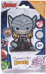 Otkrijte čaroliju dijamantnog slikanja u kompaktnoj i zabavnoj verziji Crystal Art Buddies. Zahvaljujući unaprijed otisnutoj šabloni figurice i samoljepljivim točkama jednostavno prenosite šarene kamenčiće na označena mjesta i korak po korak stvarate sjajnu figuricu Thora na drvenom stalku. Stvaranje je intuitivno, umirujuće i pogodno za zajedničke trenutke s obitelji.
