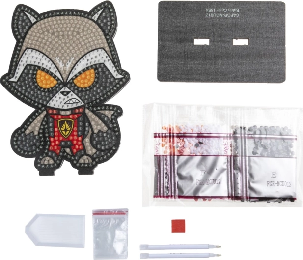 Uz ovaj nevjerojatan kreativni set, Marvelovi obožavatelji mogu stvoriti sjajnu sliku s Rocketom iz filmske serije Čuvari galaksije. Set sadrži sve potrebno za stvaranje slike dimenzija 12 x 19 x 1,5 cm, što ga čini idealnim za razvoj fine motorike kod djece.