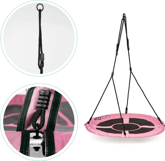 ![]() | DJETINJA LJULJAČKA TIP GNijezdoVrtna ljuljačka tipa gnijezdo osigurat će djeci dugu zabavu na svježem zraku! Idealno rješenje za kućni vrt ili dječje igralište. Ljuljačka ima 2 podesiva užeta debljine 10 mm od izdržljivog materijala te udobno sjedalo promjera 100 cm, s pjenastim oblogama okvira radi sigurnosti i udobnosti. Užad su opremljena metalnim prstenovima za montažu, stoga je ljuljačka iznimno jednostavna za sastavljanje. Možete je objesiti na stalak za ljuljačku ili na granu stabla. Zahvaljujući podešavanju duljine užeta visina ljuljačke može se prilagoditi i visini najmlađih korisnika, što olakšava uporabu. |
