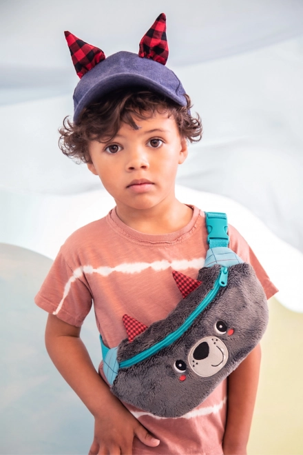 Trendi dječja torbica za struk s motivom Vuka Ludviga, namijenjena djeci od 2 godine. Sadrži podesivi naramenik i sigurno zatvaranje na patentni zatvarač za sigurno čuvanje dječjih dragocjenosti.