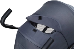 Prozorčić na krovu omogućuje vam stalni nadzor nad djetetom. U pakiranju dodatno dobivate torbu za roditelje, navlaku za kišu i mrežicu protiv komaraca.