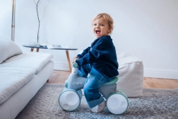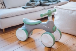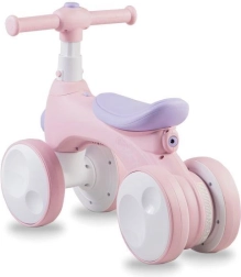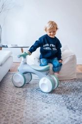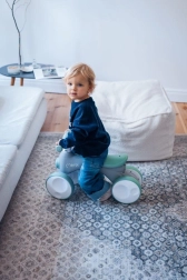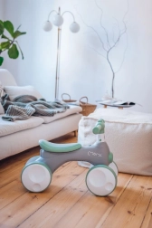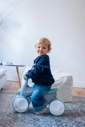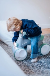 MoMi TOBIS je guralica osmišljena za najmlađe vozače: stabilna četverokotačna konstrukcija podupire ravnotežu i koordinaciju, dok atraktivne funkcije zadržavaju pažnju djece. Jednim pritiskom na gumb pokreću se čarobni mjehurići, prednje svjetlo mijenja boje, a tu je i sirena za još više zabave.