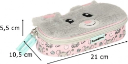 Slatka školska pernica u obliku miša s jednom prostranom komorom, unutarnjom preklopnom stranicom i džepom na patentni zatvarač drži sve pribore za pisanje pregledno i na sigurnom. Mekani pahuljasti prednji motiv i tiskana podstava razveselit će svaki dječji stil.